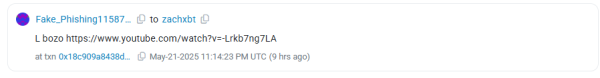 Зловмисник, причетний до пограбування і витоку користувацьких даних Coinbase, залишив глузливе ончейн-повідомлення для криптодетектива ZachXBT після конвертації вкрадених коштів. Про це розслідувач повідомив у своєму Telegram-каналі.