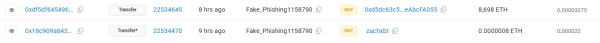 Годиною пізніше зловмисник перемістив інші 8698 ETH (близько $22,6 млн).