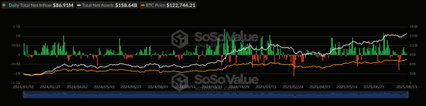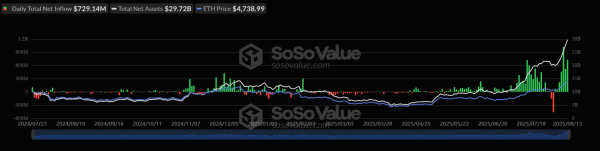 13 серпня 2025 року сумарний приплив капіталу до спотових біткоін- та Ethereum-ETF склав $816,05 млн, згідно SoSoValue. Позитивна динаміка в секторах триває шість та сім днів відповідно.