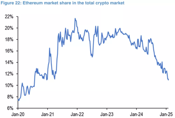 На думку аналітиків JPMorgan, друга за капіталізацією криптовалюта й надалі стикатиметься з «інтенсивною конкуренцією» з боку інших блокчейн-проєктів, на кшталт Solana. Про це повідомляє The Block.